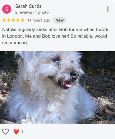 Please note that pick-up, drop-off and cleaning down are carried out in my own time and are not included in the dog walk duration